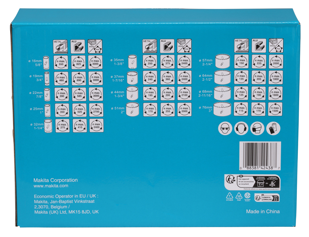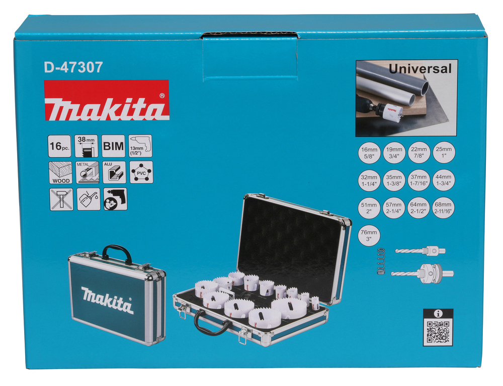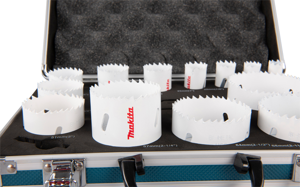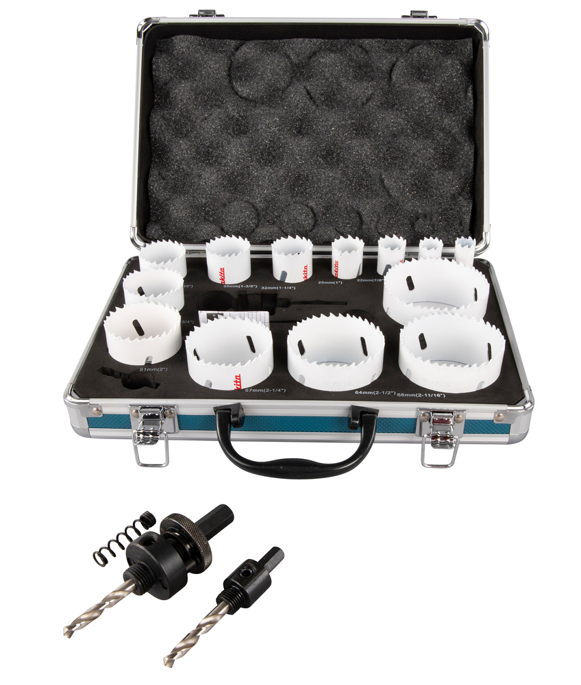 Kit Contains: HoleSaw sizes 6, 19, 22, 25, 32, 35, 37, 44, 51, 57, 64, 68, 76mm, x2 arbor and x1 spring.