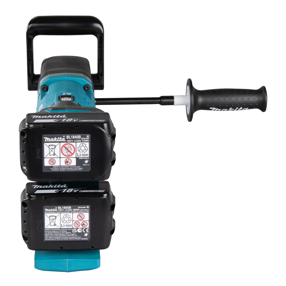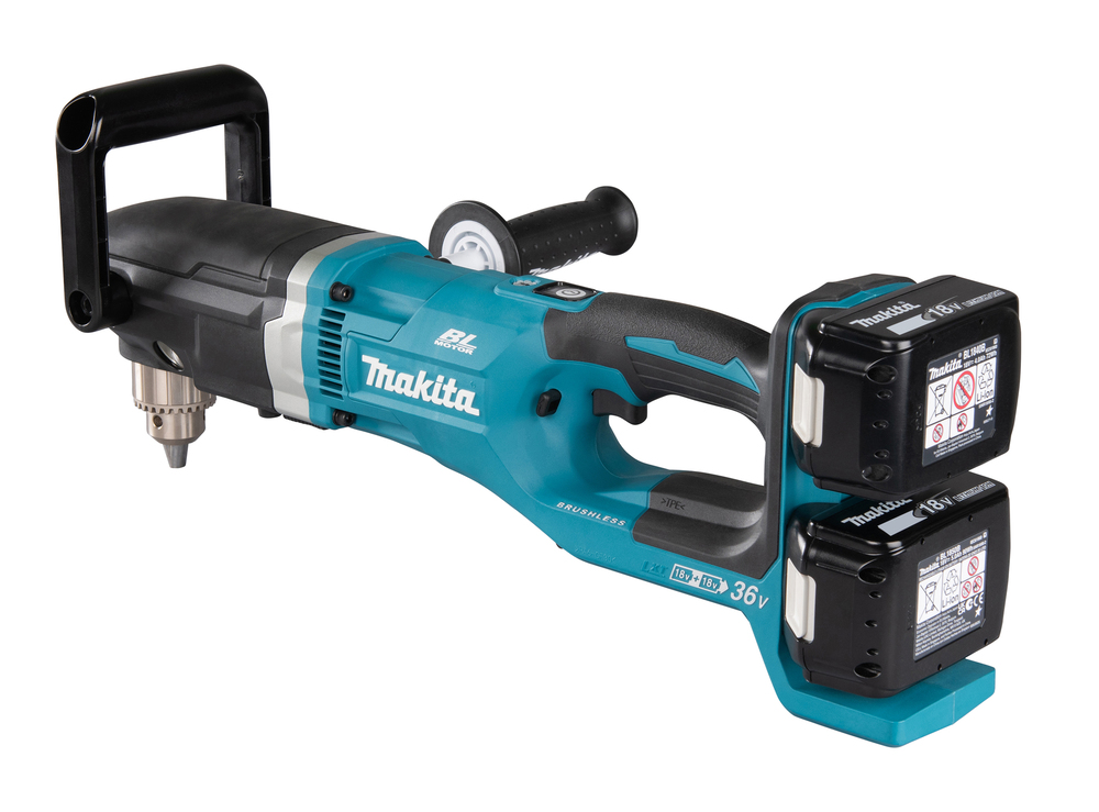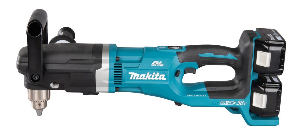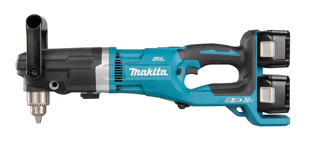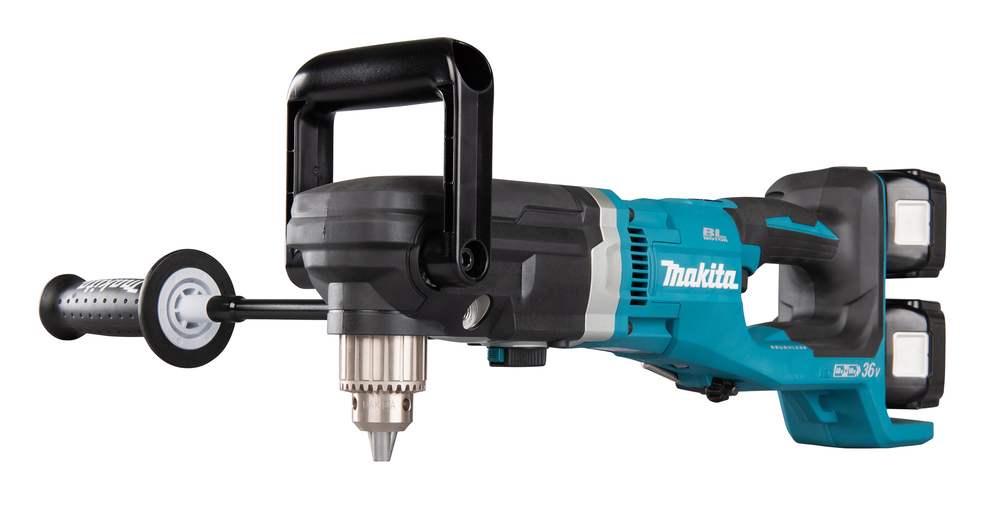 An angle grinder with two speed ranges for extremely heavy-duty jobs, such as drilling large holes in wood. The tool runs on two 18V LXT® batteries that achieve a voltage of 36V. Max. torque of 136 Nm.