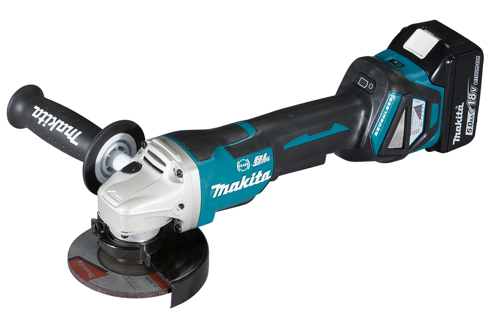 A 18V powerful cordless angle grinder. The Angle grinder can be connected to a dust extraction system with optional dust-collecting wheel cover. Anti-restart function.