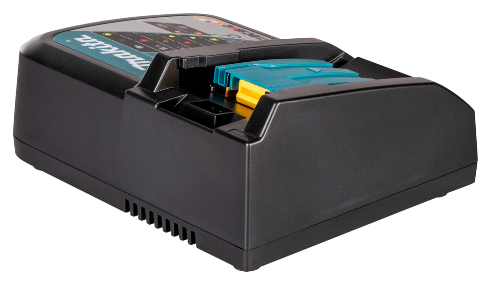 Rapid charger for 14.4V and 18V LXT® slide-style batteries. Equipped with a cooling fan that cools the battery to enable faster charging. Charging optimised in terms of voltage, current and temperature. Charges a battery in 15-55 minutes, depending on the battery’s capacity.