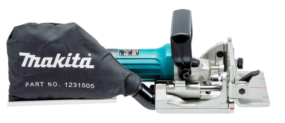 A 701 W plate joiner with a 100 mm blade and 20 mm bore for carpentry applications. A maximum bore depth of 20 mm. The tool is suitable for making biscuit joints in sheets and other wooden structures.