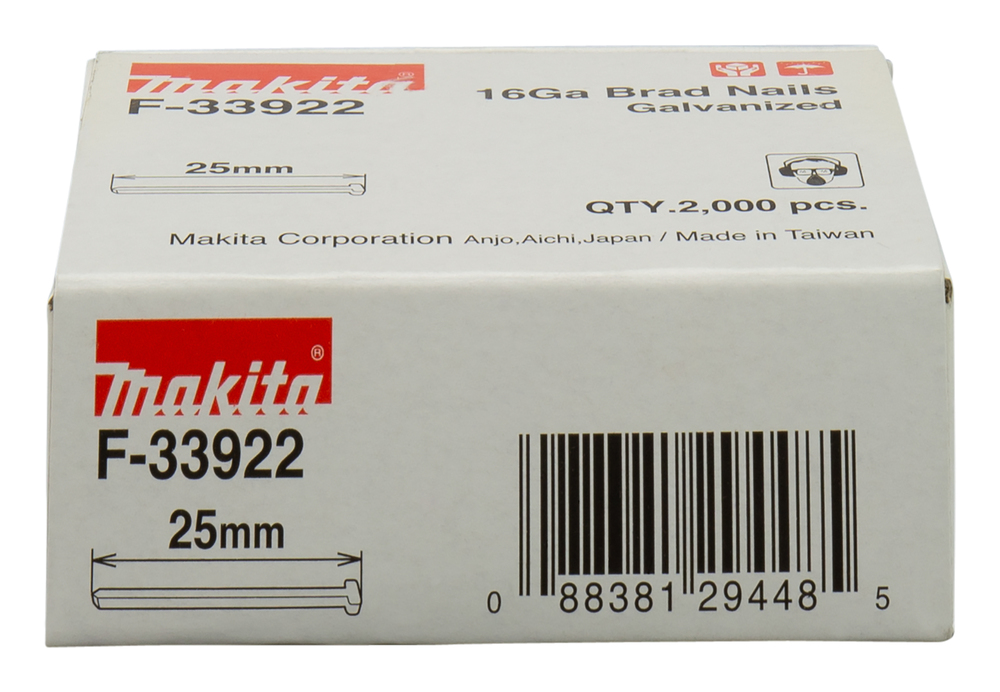 Brad Nail, 16 Ga, 1,6 x 25 mm, Galvanized, 2000 pcs