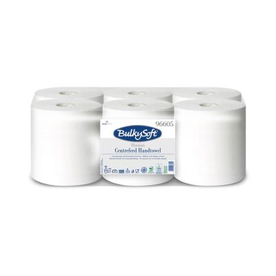 Upgrade your cleaning supplies with our Super Premium Bulky Soft White Centre Feed Rolls and experience the difference in performance and quality. The rolls have been micro embossed for super absorbency. They are perfect for busy environments where cleanliness and efficiency are paramount. Each roll is crafted from high-quality materials, ensuring superior softness and strength for effective cleaning and wiping. Ideal for a wide range of applications, including cleaning surfaces, drying hands, and absorbing spills in kitchens, bathrooms, workshops, and more. The distinctive white colour helps differentiate these rolls for specific cleaning tasks or designated areas, minimising cross-contamination. The centre feed dispensing system allows for easy and controlled use, reducing waste and ensuring hygienic handling. Can be used with our (PDCFRDW-SL) White Centrefeed Roll Dispenser. White. 2-ply. 175mm x 108m per roll. Case of 6 rolls.