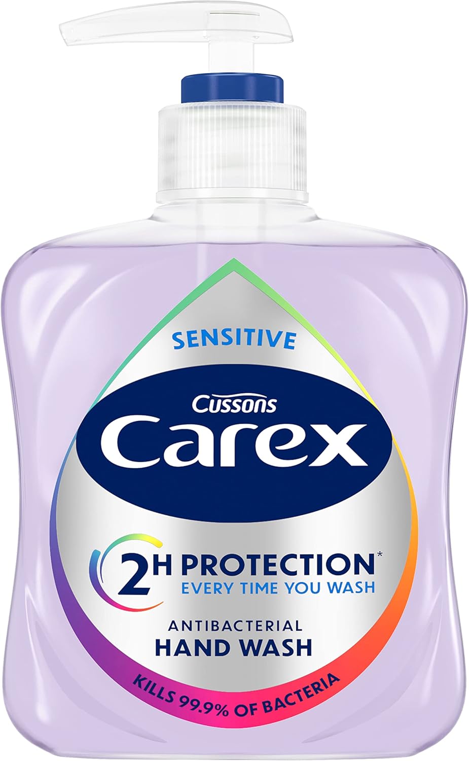 Washing your hands with Carex is one of the easiest ways to help protect yourself and others from illnesses. Our range of antibacterial liquid hand wash is created from a trusted and expertly made formulation which cleans and cares for your skin. This Carex Sensitive hand wash kills 99.9% of bacteria. The liquid hand soap protects your skin’s’ natural antibacterial defences for 2 hours after washing. This Sensitive hand wash gently cleanses skin whilst removing dirt and germs, making it suitable for the whole family. Our hand wash is vegan and dermatologically tested.. You can now do your bit for the planet by reusing your pump and bottle from your Carex hand wash. Carex Original antibacterial hand wash is also available to purchase. Always practice good hand hygiene. Case of 6 x 250ml pump bottle.