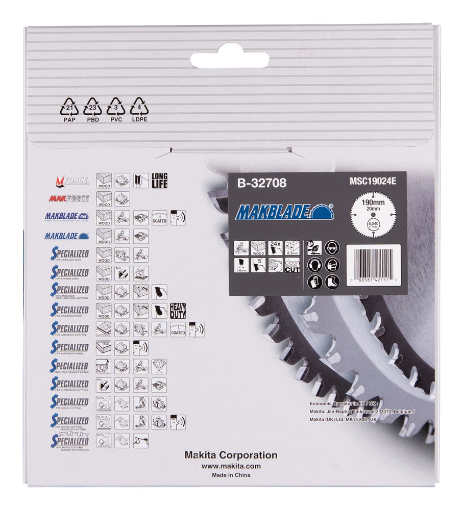 Circular Saw Blade, Makblade, TCT, 190x20mm, 24T