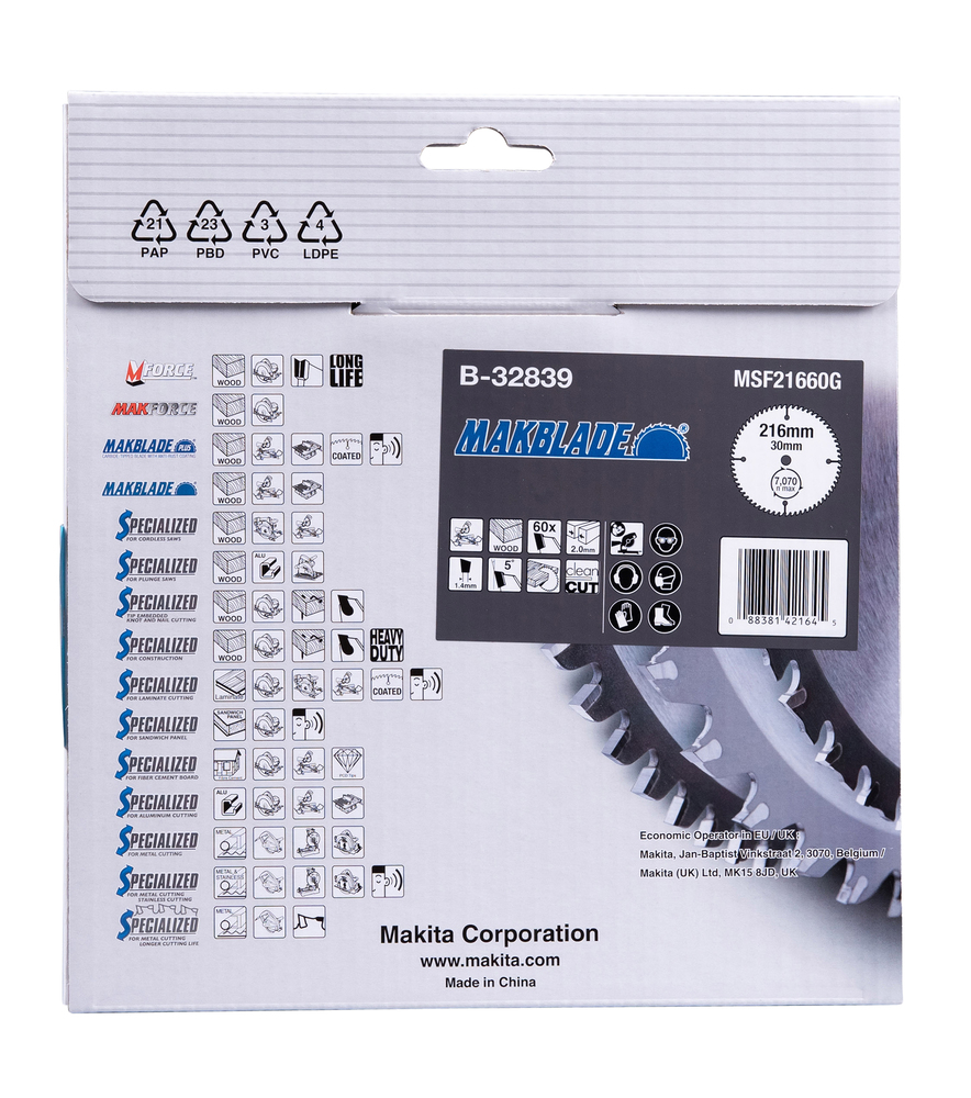 Circular Saw Blade, Makblade, TCT, 216x30mm, 60T