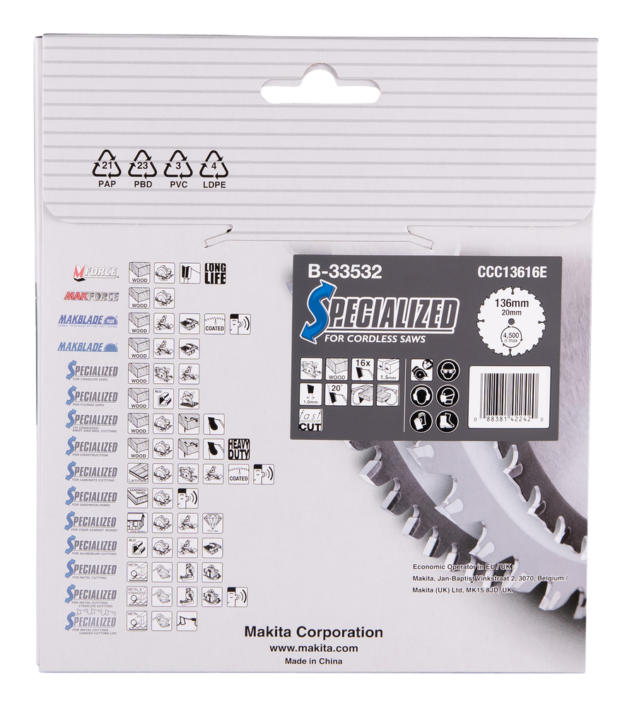 Circular Saw Blade, Specialized, T.C.T, 136x20mm, 16T