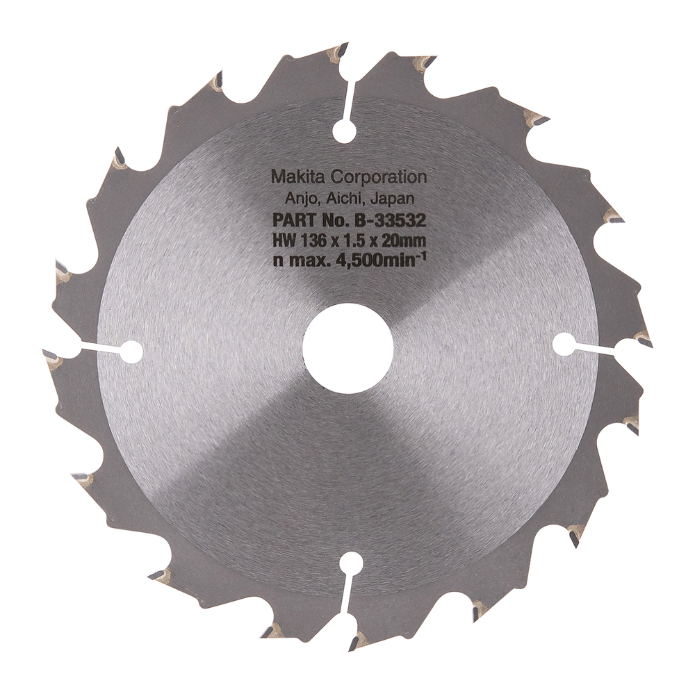 SPECIALIZED saw blade with 136mm diameter for cutting wood. The blade has 16 tungsten carbide tipped teeth, a kerf of 1.5mm and hole diameter of 20mm.
