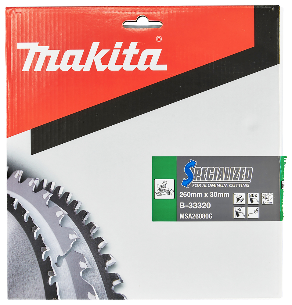 SPECIALIZED saw blade with 260mm diameter for cutting aluminium. The blade has 80 tungsten carbide tipped teeth, a kerf of 2.4mm and hole diameter of 30mm.