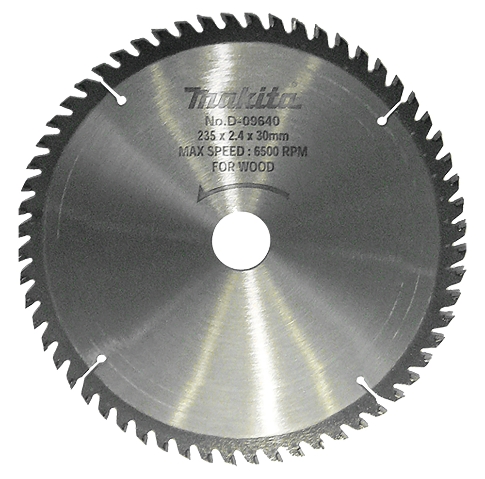 Standard 235mm carbide tipped saw blade for circular saws for cutting wood. The blade has tungsten carbide tipped 60 teeth, kerf is 2.4mm and hole diameter is 30mm.