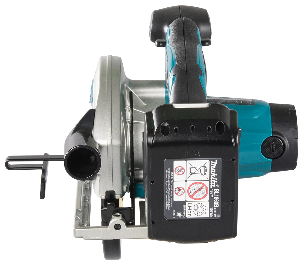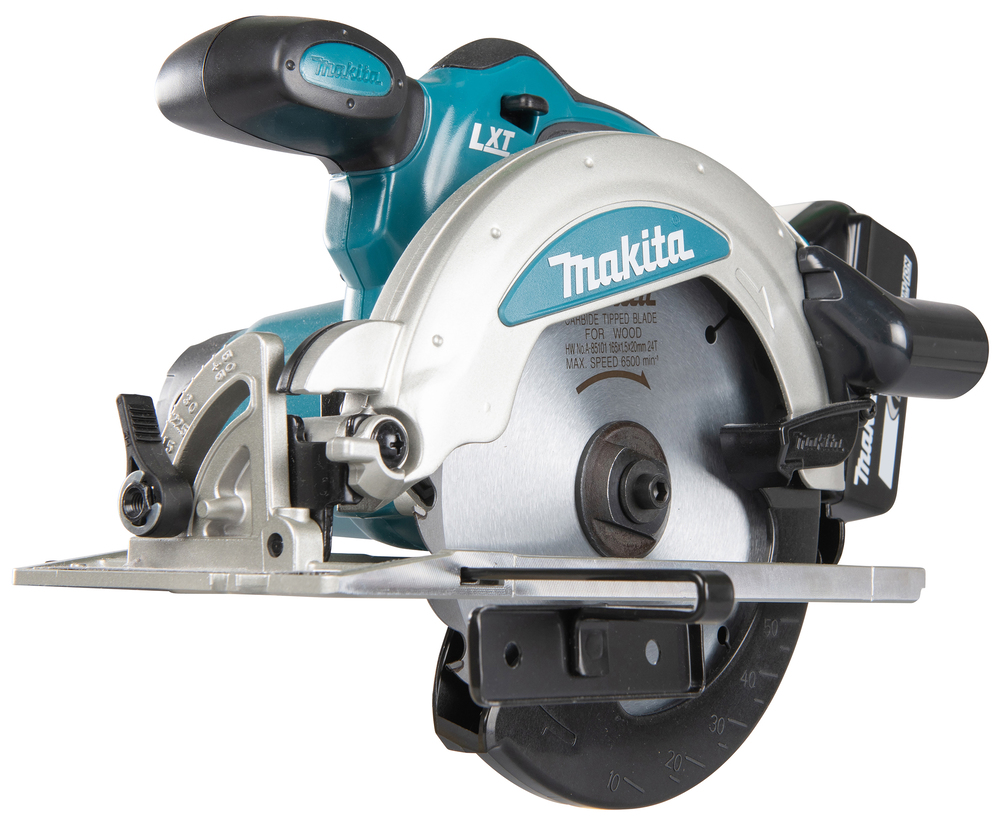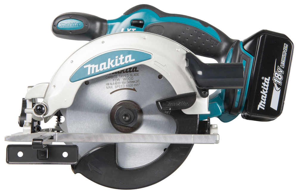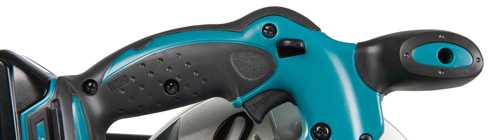 An efficient cordless circular saw for wood. Accepts blades with 165 mm diameter that achieve a max. cutting depth of 57 mm. Ventilation air is guided through the front to keep the cut line clear and an LED light offers added illumination.