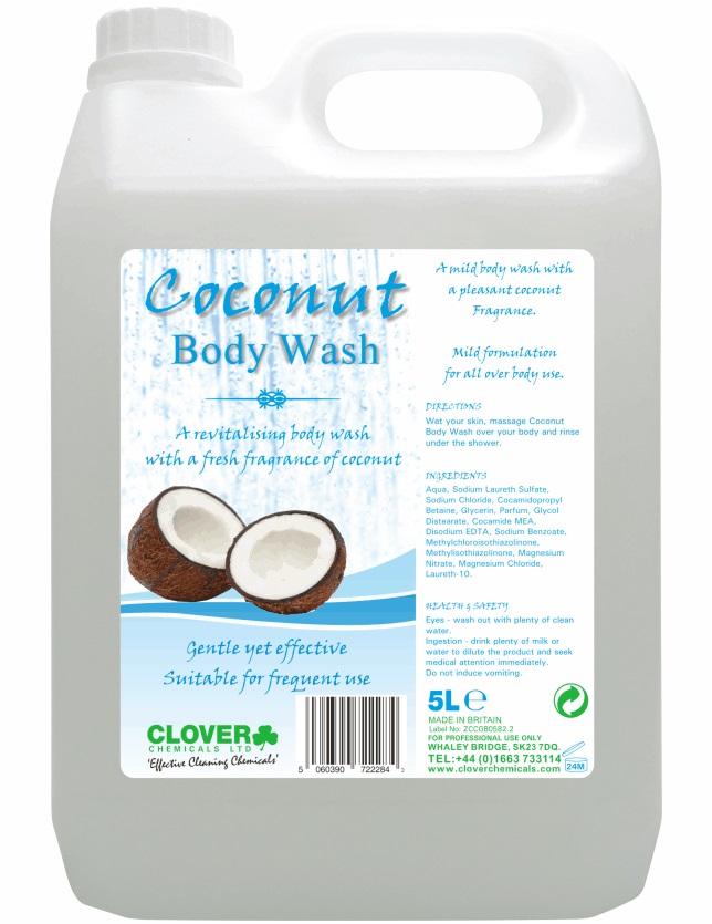Ideal for health clubs, sport centres, hotel rooms, changing rooms and shower areas. A revitalising body wash with a fresh fragrance of coconut. 1 x 5 litres.