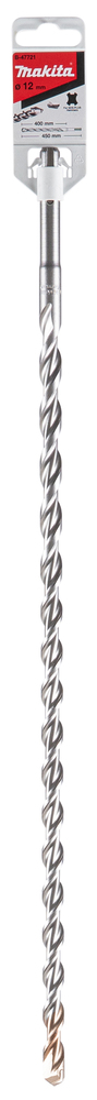 SDS-PLUS hammer drill bit for drilling concrete. The double-edged blade allows fast drilling & the tungsten carbide tip increases working efficiency. This bit has an overall length of 450mm, working length of 400mm and diameter of 12mm.