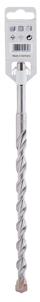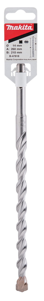 SDS-PLUS hammer drill bit for drilling concrete. The double-edged blade allows fast drilling & the tungsten carbide tip increases working efficiency. This bit has an overall length of 260mm, working length of 210mm and diameter of 14mm.