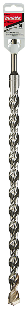 SDS-PLUS hammer drill bit for drilling concrete. The double-edged blade allows fast drilling & the tungsten carbide tip increases working efficiency. This bit has an overall length of 450mm, working length of 400mm and diameter of 20mm.