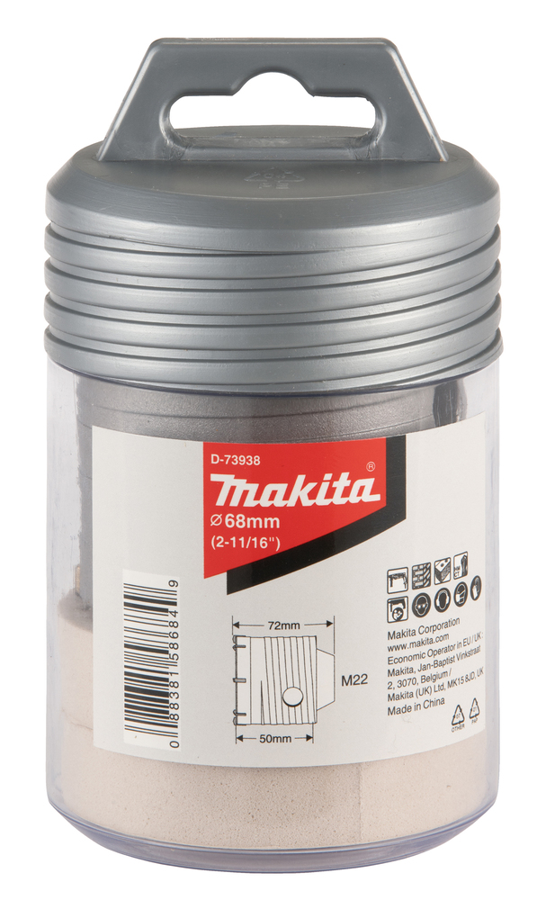 SDS-PLUS hammer drill bit for working with concrete. The large centreing bit leads to an increased lifespan and optimum drilling, whilst the tungsten carbide tip increases working efficiency. This bit has an overall length of 72mm, working length of 50mm and diameter of 68mm.