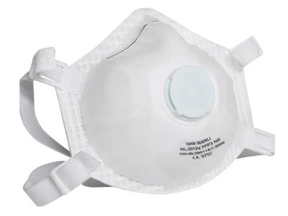Fold flat disposable FFP3 valved respirator offering reliability, effective protection against high levels of fine dust, mist, and other airborne particles. Two head straps that provide a secure fit. Adjustable nose bar enables ability to wear protective eye wear whilst in use. The models are single shift devices. (Denoted by the classification symbol NR). Conforms to EN149: 2001 + A1: 2009 – Respiratory Protective Devices WR 5003. Pack of 10 masks.