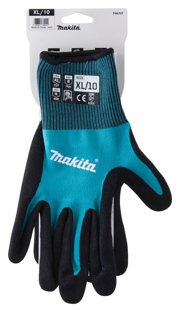 Makita Cut Level 1 Nitrile Coated Dipped Gloves are both strong and flexible, with high dexterity in the finger and wrist areas and Nitrile coating in the palm for added grip. They are ideal for use in general maintenance and repair, shipping and warehouse work, light construction, manufacturing, automotive & DIY home improvements. They are oil and fluid- resistant, machine washable and touch screen compatible
