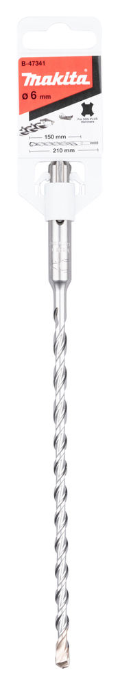 SDS-PLUS hammer drill bit for drilling concrete. The double-edged blade allows fast drilling & the tungsten carbide tip increases working efficiency. This bit has an overall length of 210mm, working length of 150mm and diameter of 6.0mm.