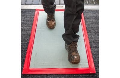 Heavy duty, hard wearing site entrance tacky mat with frame is used for removing dust, dirt and debris from footwear upon site or building entry. Each removable cotton sheet is embedded with a light tacky adhesive so when the user steps on the mat, surface dirt from footwear is transferred onto the mat ensuring a cleaner site. It is also able to remove dirt from foot traffic that may be slightly damp. Red & Blue. 90cm x 60cm. 30 removable sheets per mat.
