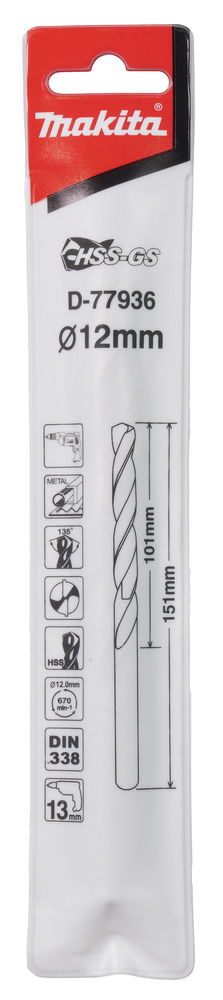 Metal drill bits HSS-GS with improved drilling speed, thanks to a reviewed material and tip shape. The tip has been designed with 135° split point for easy positioning and to reduce side slipping at the start of drilling.