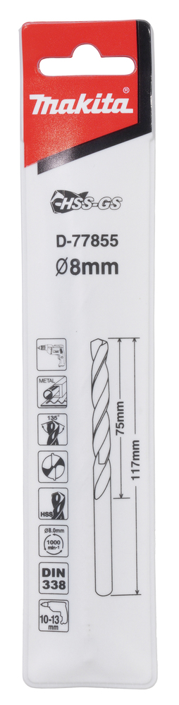 Metal drill bits HSS-GS with improved drilling speed, thanks to a reviewed material and tip shape. The tip has been designed with 135° split point for easy positioning and to reduce side slipping at the start of drilling.