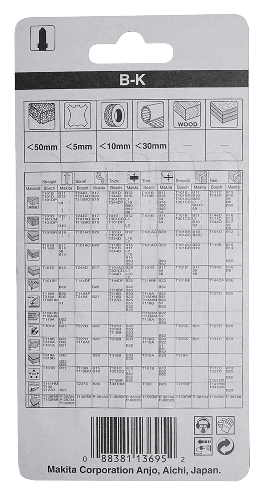 Jigsaw blade especially designed for the cutting of soft materials such as cork, leather and rubber. Overall length is 100mm, with a working length of 75mm. Pack of 5 blades.