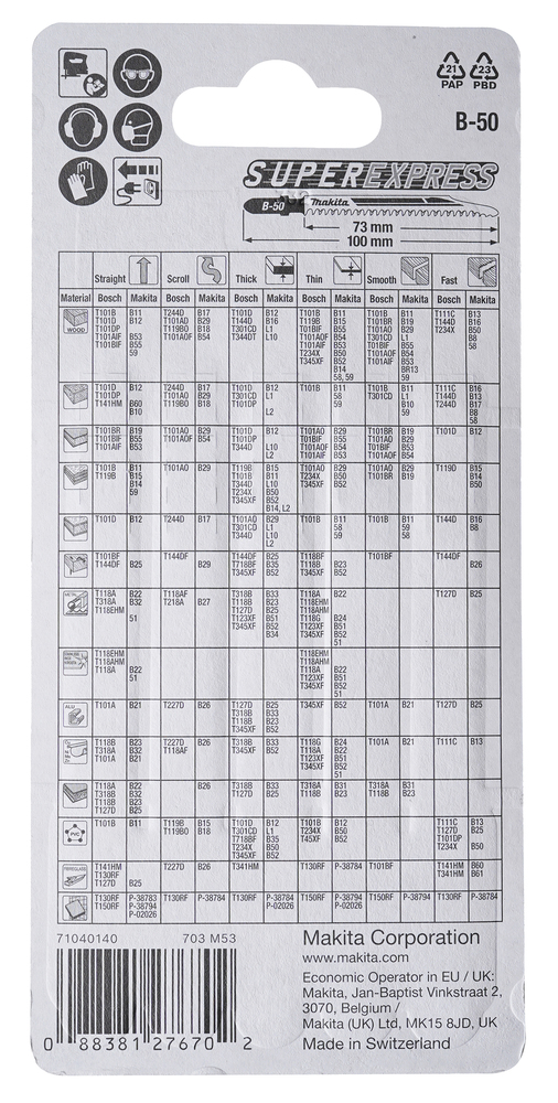 Jigsaw blade with ground and taper ground teeth for cutting materials such as wood and PVC. Overall length is 100mm with a working length of 73mm and 8-11 TPI. Pack contains 5 blades.