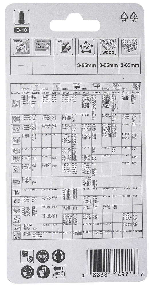 Jigsaw blade with ground and taper ground teeth for cutting materials such as wood and plastics. Overall length is 105mm with a working length of 76mm and 9 TPI. Pack contains 5 blades.