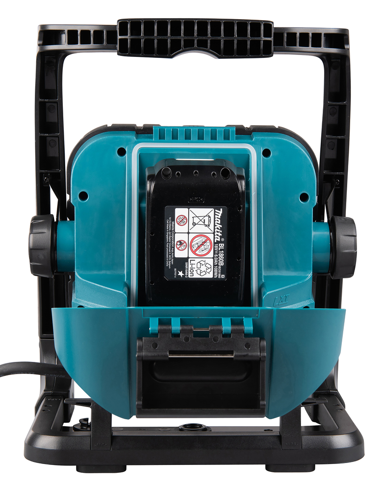 Battery or corded operation; compatible with 18V LXT® batteries. 2-Mode operation: delivers 750 lumens on High mode or 450 lumens on Low mode. Integrated handle can be used as a hanging hook for user convenience.
