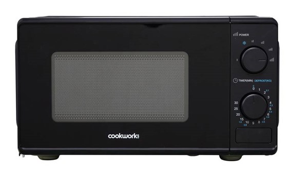 Whether you’re warming up soup for lunch or defrosting yesterday’s casserole, the Cookworks 700-watt (MAFF rating on door calculated separately for small food items) microwave is ready to cook your meals to perfection. An absolute breeze to operate, it has 6 power levels to choose from and a rotating turntable for even cooking. What’s more, the stylish design and black finish ensures it looks great on your kitchen counter. Microwave power output 700 watts. Defrost option. 17 litres interior capacity. 24.5cm diameter rotating turntable. The U-shape plate is made of SECD with coating. The other is made of cold-rolled sheet. 9.4kg. Black. (H) 24.3cm x (W) 44.6cm x (D) 33.6cm. 1m cable. 17 litre capacity.