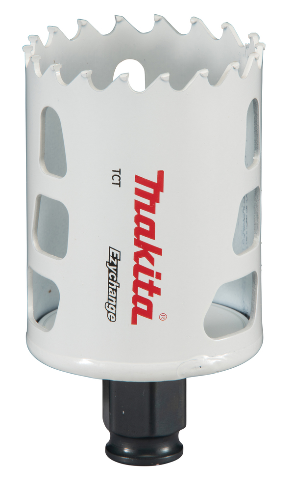 With Ezychange system you can easily and quick attach or detach center drill or holesaw by just pushing them into an adapter to be joined or pulling them from an adapter for to be released. Easy dust removal from three holes outside of holesaw.
