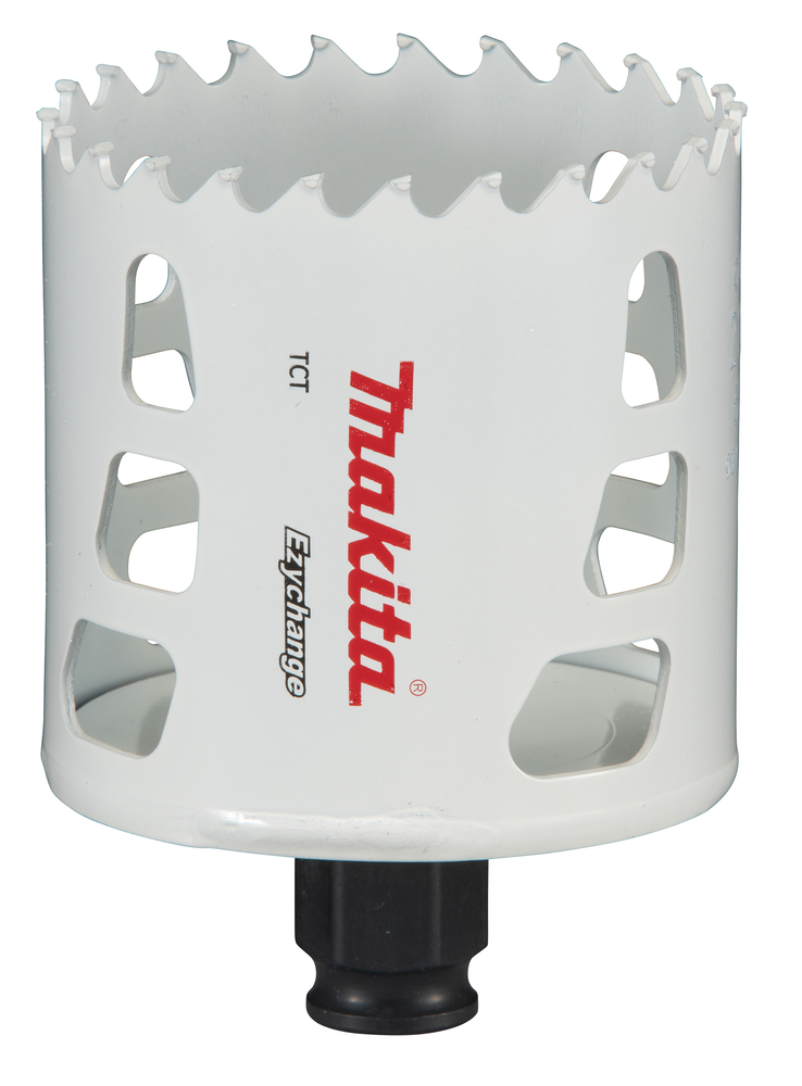 With Ezychange system you can easily and quick attach or detach center drill or holesaw by just pushing them into an adapter to be joined or pulling them from an adapter for to be released. Easy dust removal from three holes outside of holesaw.
