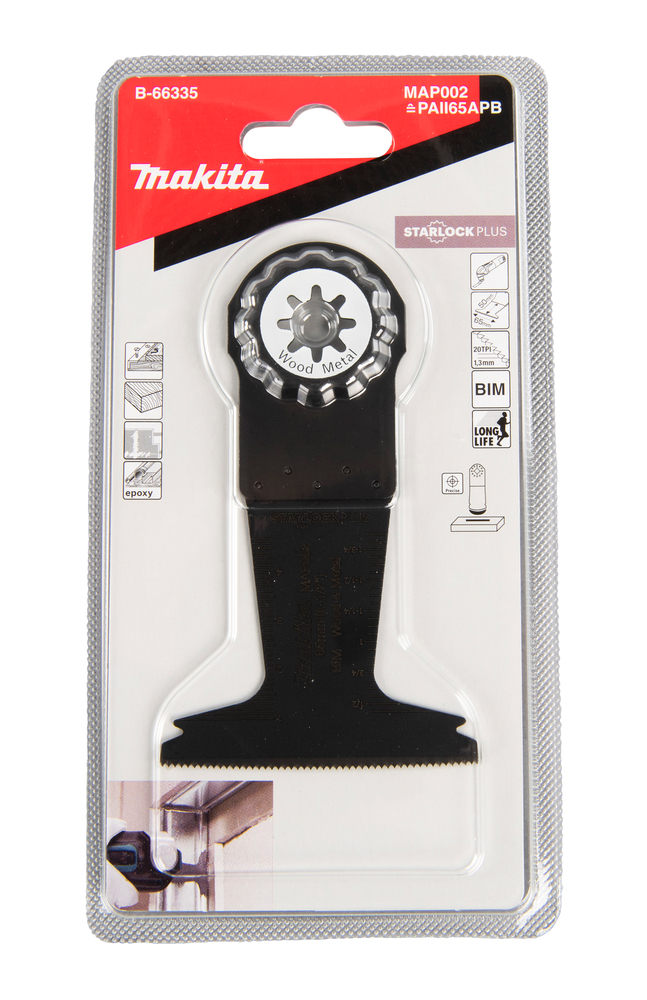 STARLOCK PLUS multitool blade specially designed for sawing materials such as wood and metal. This Bi-metal blade has a width of 65mm and a working length of 50mm. Blade has 20 TPI. Pack contains 1 blade.