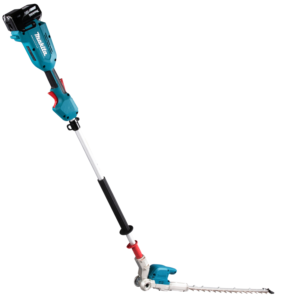 Brushless hedge trimmer for high hedge trimming.