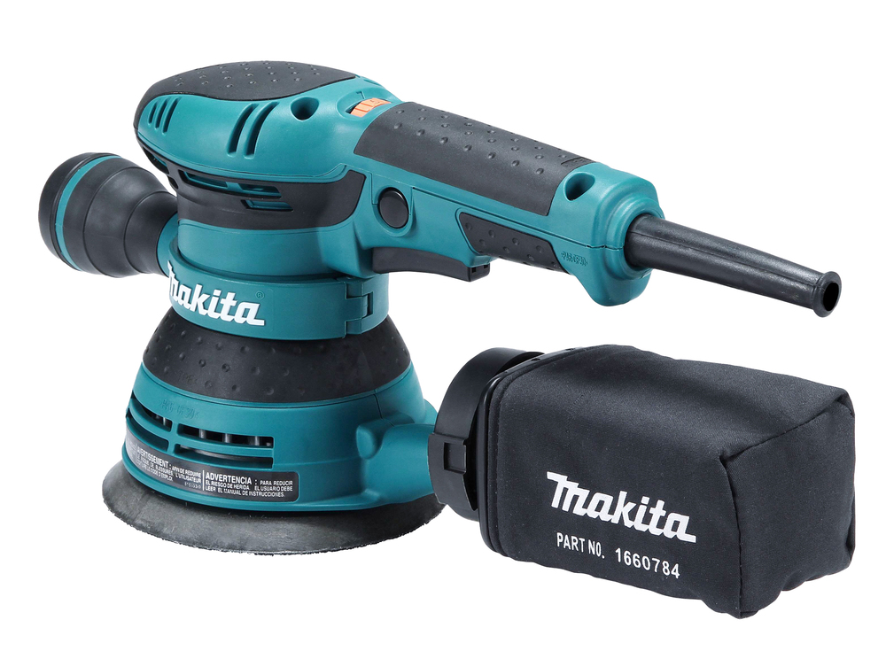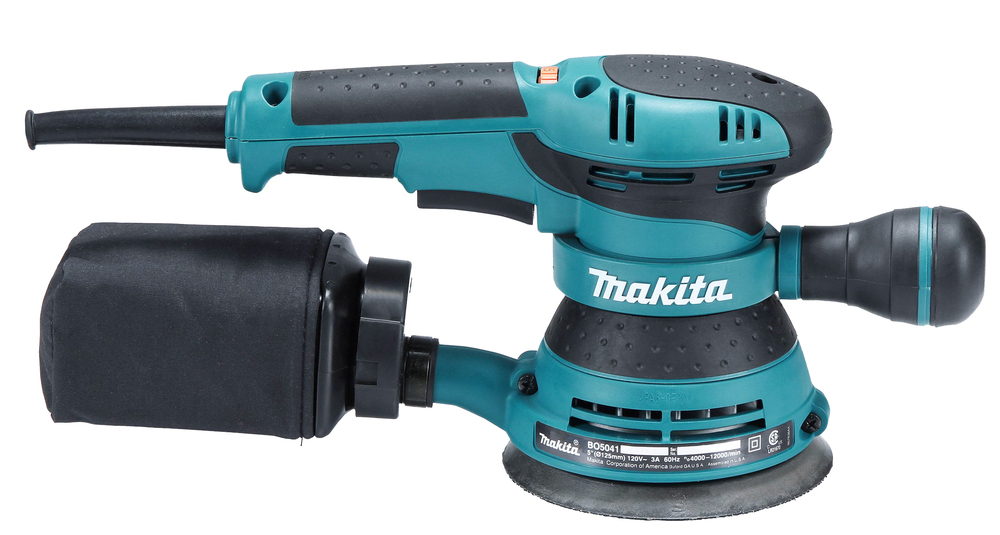 A random orbit sander with a front handle that rotates 360 degrees for improved comfort. Paper bag for dust removal. Speed control dial for optimising operation in line with material. Pad diameter of 125 mm.