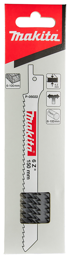 Reciprosaw blade for cutting wood. This high carbon steel blade has an overall length of 150mm and a working length of 130mm. Blade is 1.3mm thick and has 6 TPI. Pack contains 5 blades.
