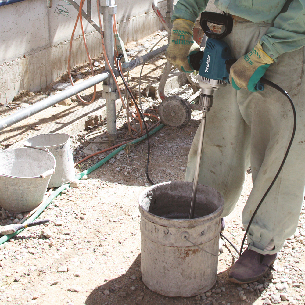 A robust, low-speed drill for material mixing. Turning handle design to protect the operator’s wrist if the blade gets stuck. A variable speed dial for adjusting the flow rate and direction. Suitable for large drill bits and for mixing.