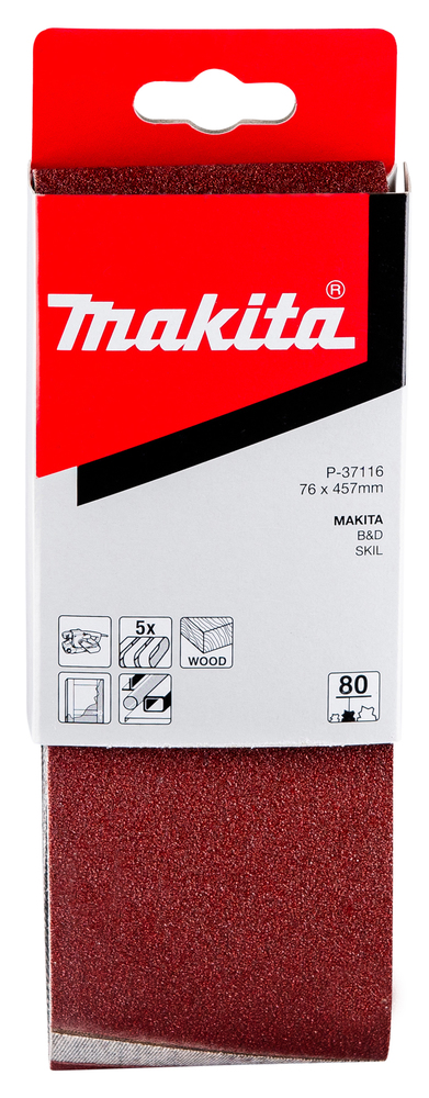Sanding belt 76 x 457 mm 80G, 5 pcs