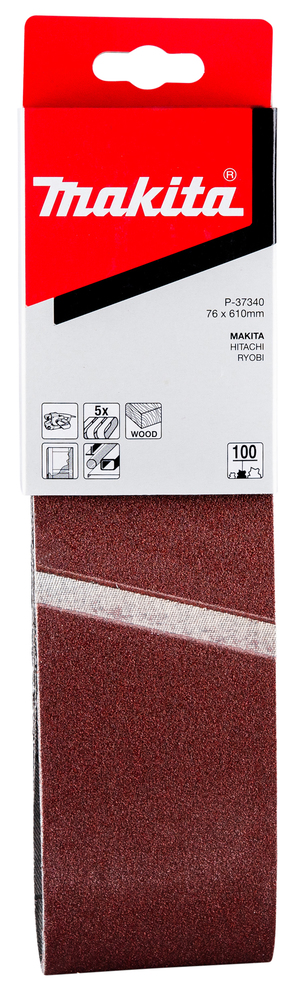Sanding belt 76 x 610 mm, 100G, 5 pcs