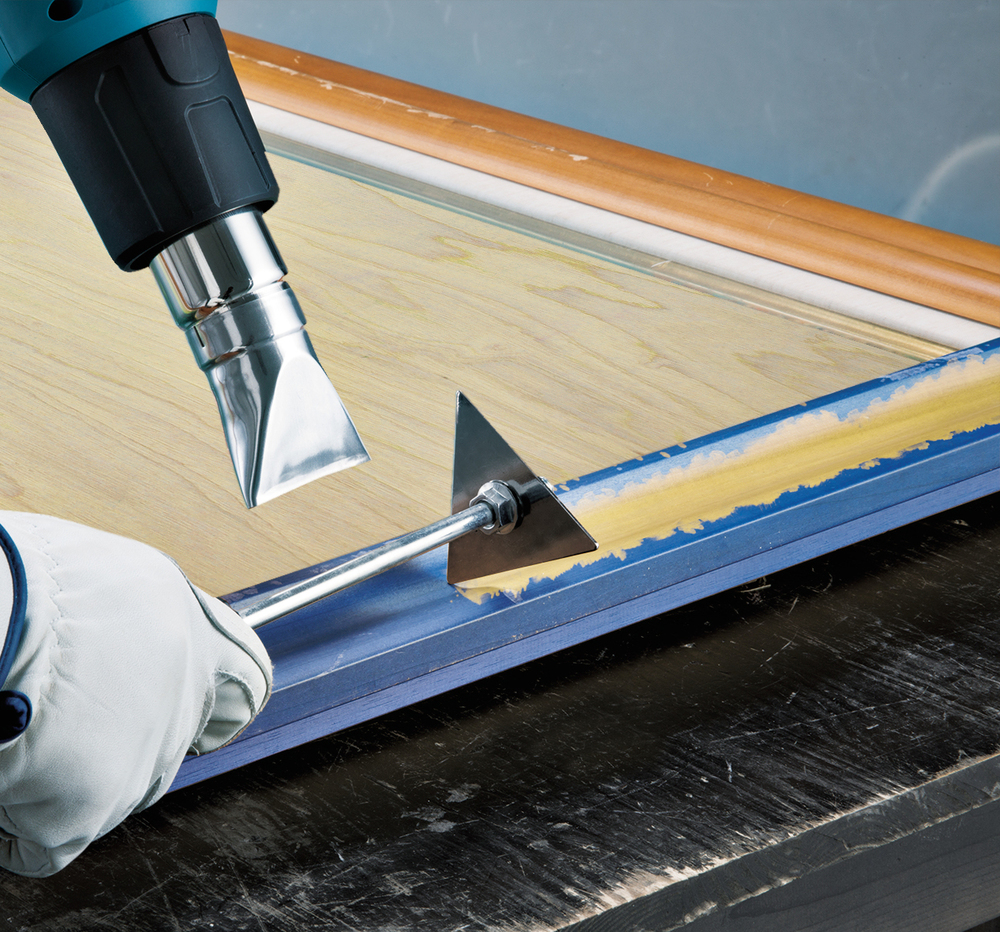 Consists of a 22cm long handle and three interchangeable blades with different profiles for straight surfaces, corners and edges. The scrapers can be used particularly effectively in conjunction with a hot air blower.