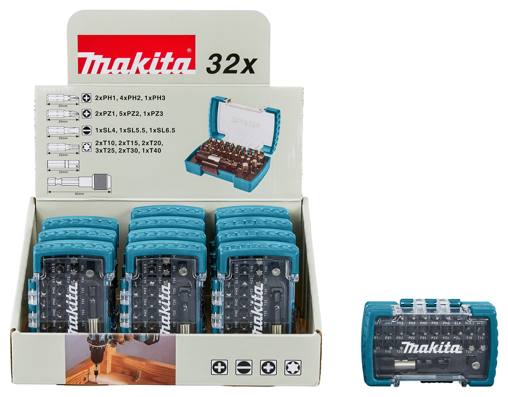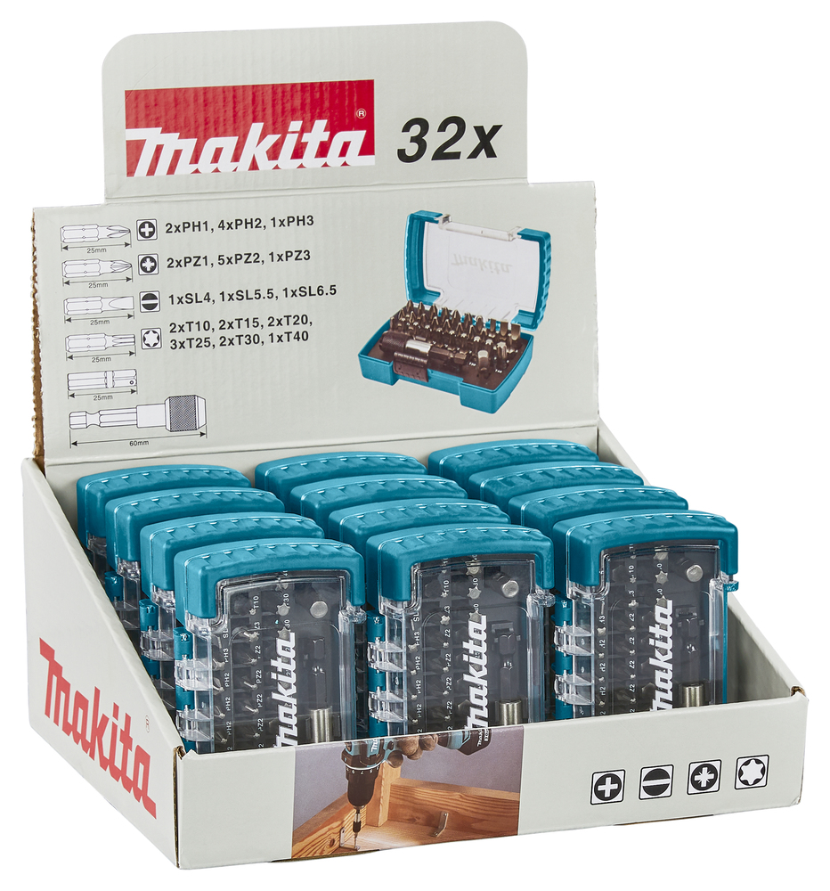 Screw bit with sleeve chuck bit holder, 32 pcs (12 sets in display)