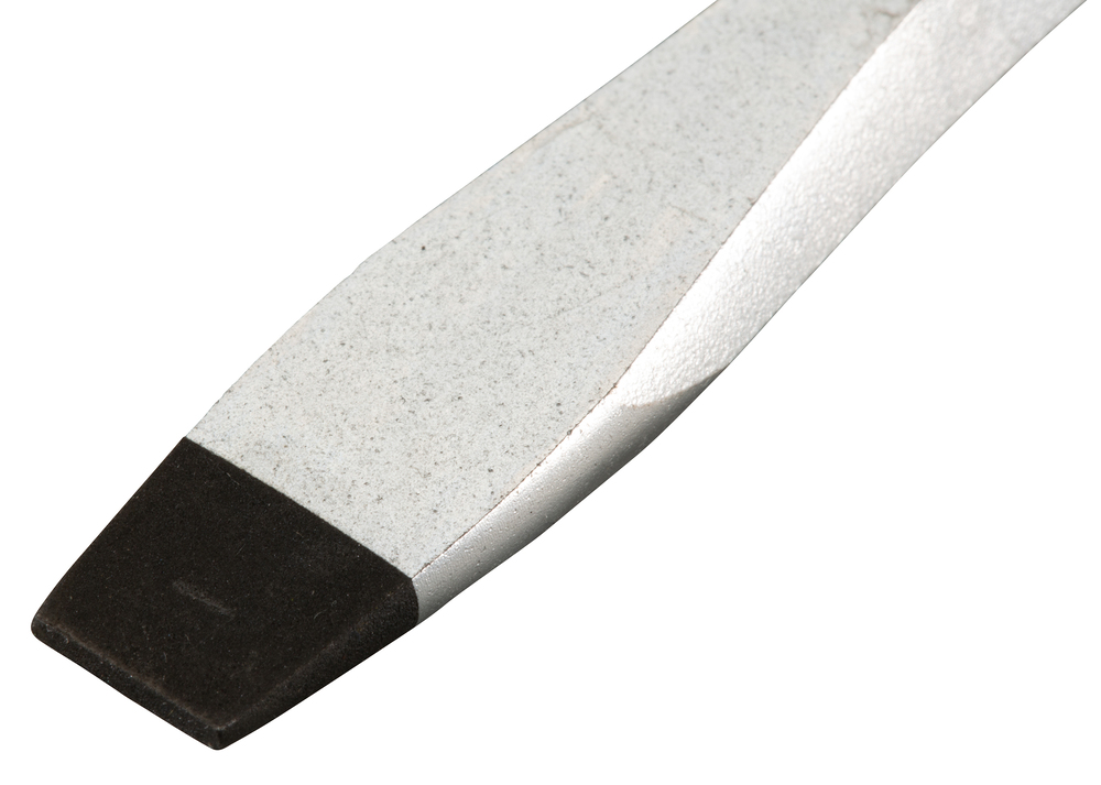 Go-through screwdriver with hex shank that can be used for extra torque when using a wrench. “Go-through” constuction makes grip end possible to be struck by hammer.