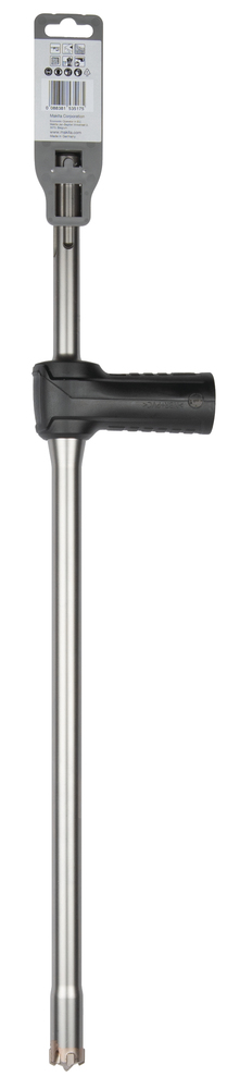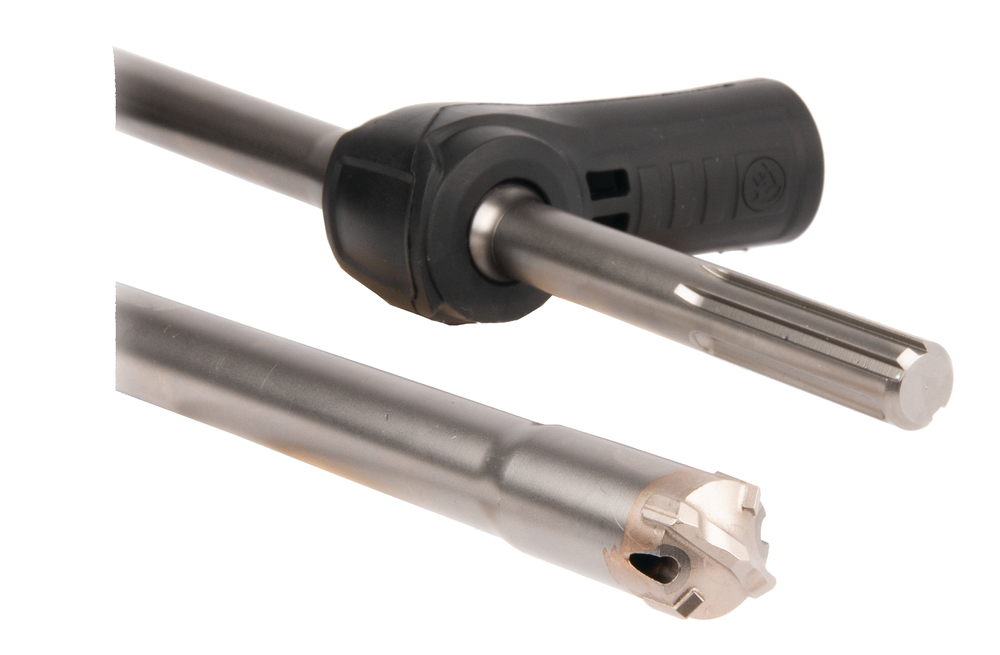 SDS-MAX drill bit with dust extraction holes in the cutting tip and a vacuum connection in the shaft. With the vacuum cleaner connected, the blade stays cool and the cutting waste is efficiently removed from the drilled hole. This bit has an overall length of 600mm, working length of 400mm and diameter of 24mm.