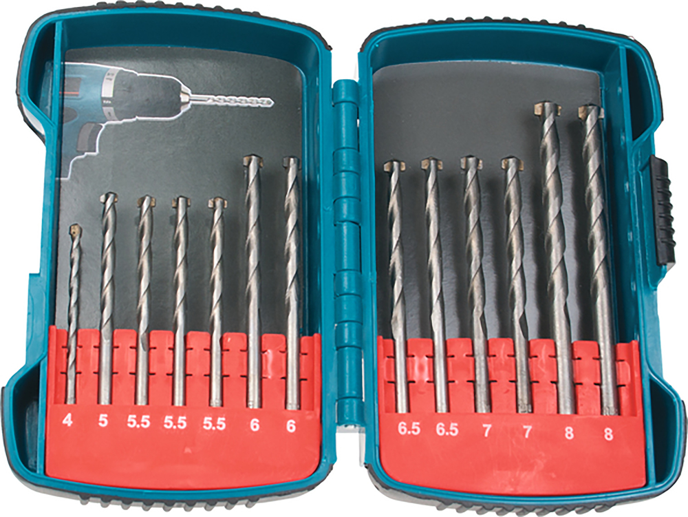 Drill bit set for drilling concrete. Set includes concrete drill bits with tungsten carbide tips. These drill bits diameter is 5.5-10mm. The set includes 5 concrete drill bits.