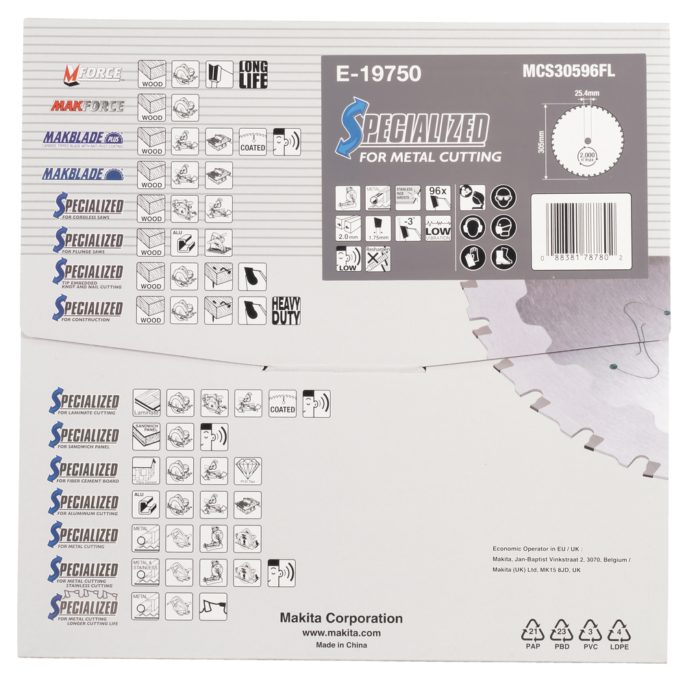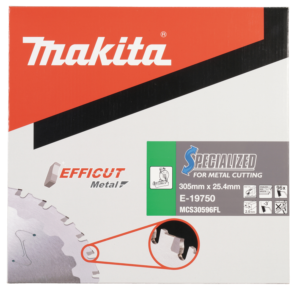 EFFICUT Blade with carbide tips for efficient and rapid cutting of metal and stainles steel. Ideal for cordless saws. This blade features a diameter of 305mm with 25.4mm arbor hole. With 96 teeth and 2.0mm kerf, it ensures precise and smooth cuts every time.