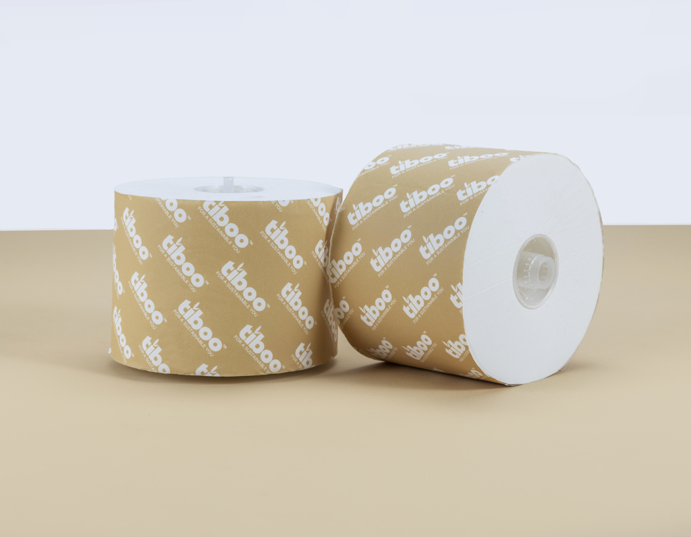 Tiboo Sugarcane Matic Toilet Rolls are eco-friendly, yet cost-effective system toilet rolls ideal for schools and offices. It is whiter and softer with a premium feel and breaks down upon contact with water much quicker than other types of paper. The Tiboo Matic Toilet rolls will fit various toilet roll dispenser systems. The sugarcane material is made from bagasse, a byproduct of the sugar production process that would have otherwise go unused. It is known as a renewable resource and requires less water and energy to produce compared to wood pulp toilet tissue. Like all plants, sugarcane can absorb CO2 but sugarcane does this much faster than trees, so absorbs more CO2 over its life cycle. The sustainability of sugarcane makes it ideal for complying with eco-friendly regulations. White. 88m per roll. Case of 36 rolls.